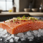 Disposez le saumon dans l’assiette, ajoutez les légumes autour. C’est prêt — simple et festif!